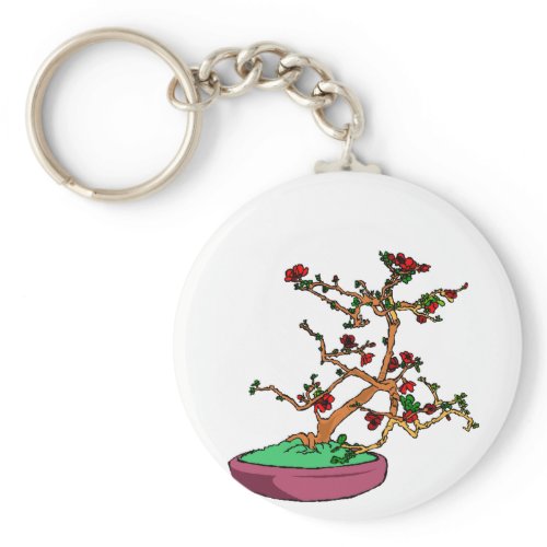 Flowering scrawny bonsai, literati style, in a purple pot graphic. Keychain great for garden clubs, bonsai conventions, or any other time a cool tree is needed!
